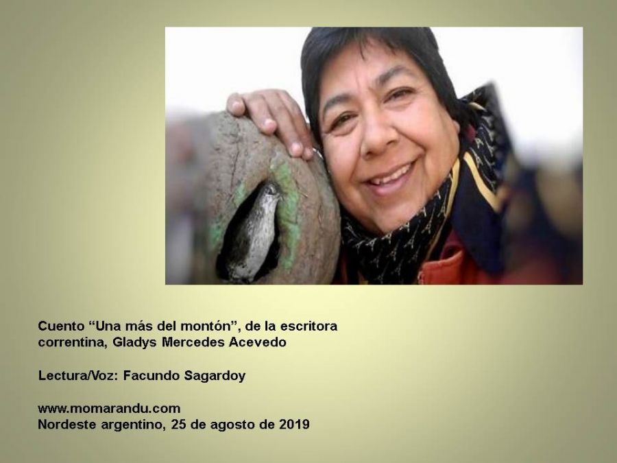 En esta oportunidad momarandu.com acerca a la escritora y artista plástica goya, Gladys Mercedes Acevedo. A fin de que pueda llegar a más personas la literatura regional, su cuento, “Una más del montón”, es leído por el periodista Facundo Sagardoy.