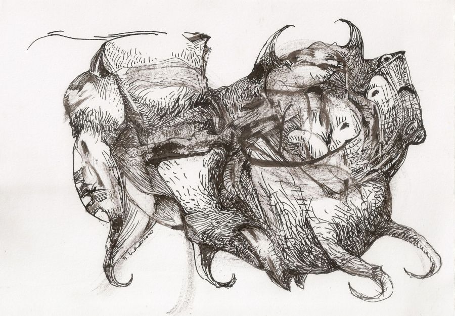Foto: Obra Toro, Eugenio Led. 21 x 15 cm. Tinta china a plumín sobre papel. 2018.