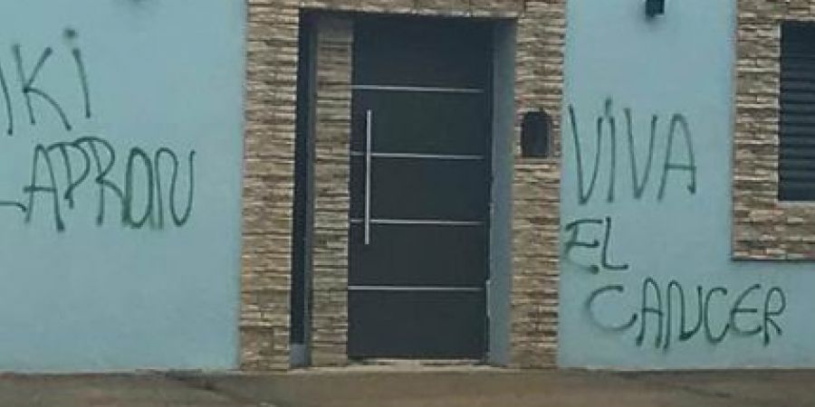 El viernes en la casa de la hija del intendente Salvarredy apareció la pintada : "Piky Ladrón, y VIVA EL CÁNCER" . El hecho es que la hija del intendente , Mónica Beatriz, se encuentra enferma.