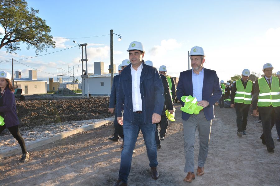 El gobernador Gustavo Valdés junto al ministro de Interior, Obras Públicas y Vivienda de la Nación, Rogelio Frigerio, recorrieron las 350 viviendas del barrio Santa Catalina que son construidas en conjunto con Plan Belgrano e Invico.