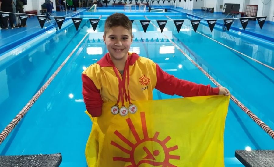 Lucas Leguiza, de 12 años, nadador de Club Universitario del Nordeste, terminó en el tercer lugar en las pruebas 100 metros libres, 50 metros libres y 100 metros espalda durante el torneo de natación paralímpica en el Club atlético Independiente (CAI)
