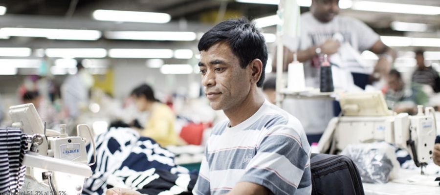 Foto: Migrante trabajando en el sector textil de Jordania.