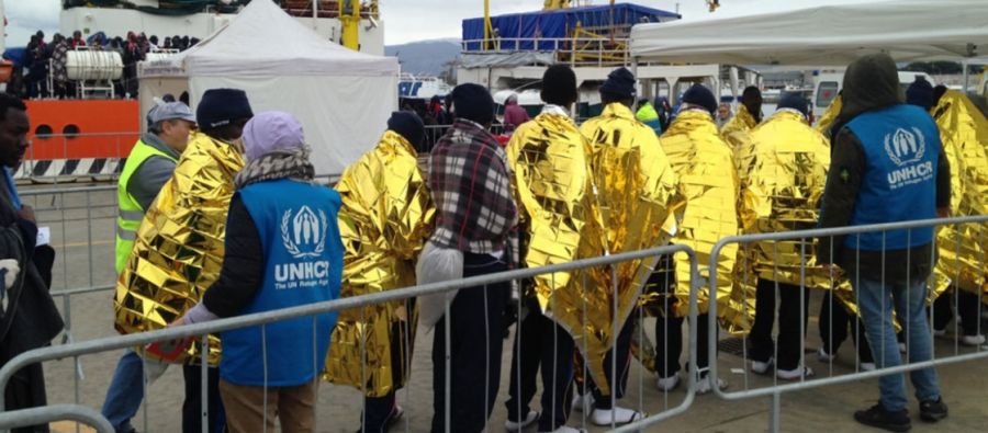 Foto: Personal de ACNUR recibe a sobrevientes del Mediterráneo en Messina, Sicilia.