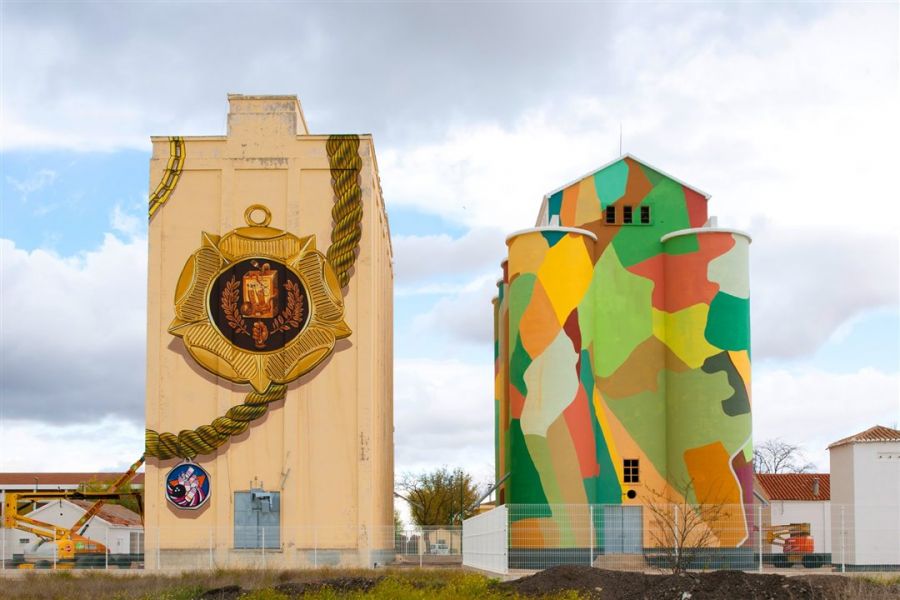 El street art invade diez viejos silos de cereales abandonados en Ciudad Real con ‘Titanes’, lo último de Okuda San Miguel (y amigos)