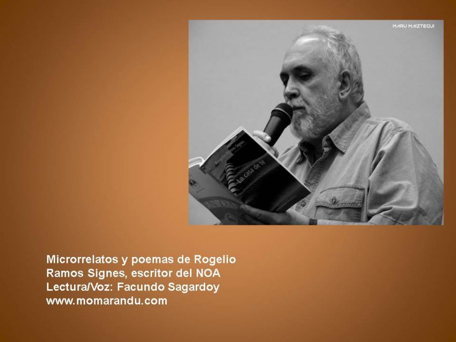 Hoy compartimos en momarandu.com algunos textos del escritor del NOA, Rogelio Ramos Signes. Acercamos aquí algunos microrrelatos y poemas de este, además, novelista, ensayista, periodista literario y difusor cultural, que también podremos escuchar leídos en la voz de Facundo Sagardoy