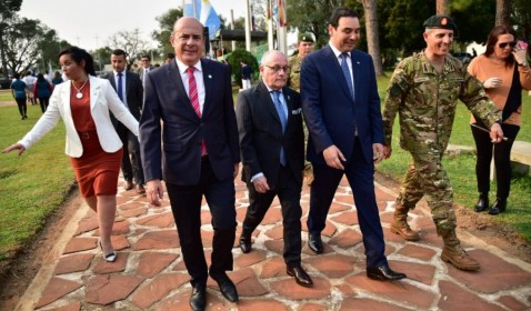 Luego, el mandatario provincial, la jefa comunal, el ministro de Relaciones Exteriores y el general de Brigada se dirigieron hacia el palco oficial emplazado para la ocasión, donde también estuvieron presentes el vicegobernador Gustavo Canteros; el senador nacional Pedro Braillard Poccard; el cónsul argentino en Uruguayana, Ricardo Di Lelle, ministros y legisladores provinciales e intendentes de zonas aledañas, entre otros.