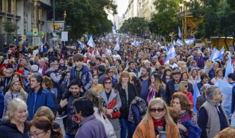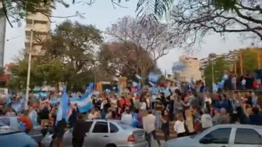 "¡Mauricio no se va, Mauricio no se va, no se va, Mauricio no se va!", cantan unos, otros agitan banderas celeste y blanco. Vea las imágennes en video.