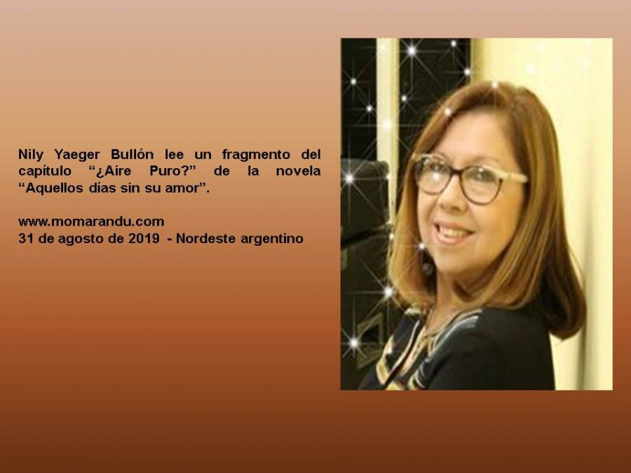 La escritora correntina Nily Yaeger Bullón, el próximo 12 de septiembre presentará su último libro “Aquellos días sin su amor”. Lo hará en el Centro Cultural Universitario. Hoy momarandu.com presenta un extracto de esta novela, además leído por la propia autora.