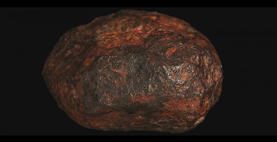 Los investigadores creen que el mineral, de color rojo y negro, se forjó probablemente en el núcleo fundido de un antiguo planeta destruido hace ya mucho tiempo, lo que es extremadamente raro.