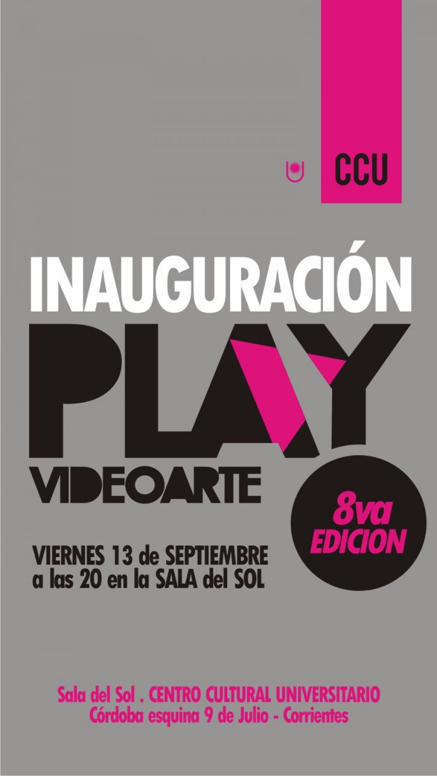 Viernes 13: 20hs- Sala del Sol CCU (Còrdoba esquina 9 de julio). Inauguración de PLAY, Semana de Videoarte.