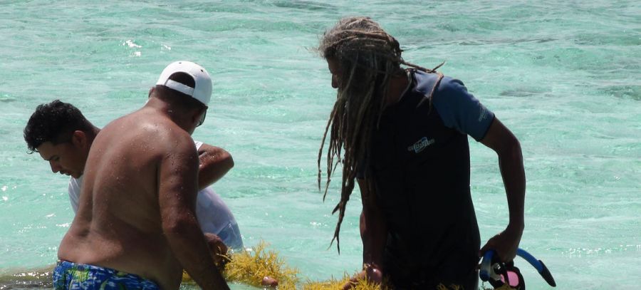 Foto: Pescadores reciben una capacitación en el cultivo de algas marinas en Placencia, Belice, en el marco de una actividad de cooperación sur-sur.
