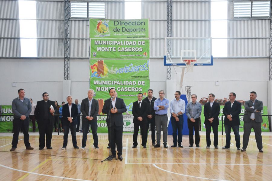 “Lo estamos haciendo por ellos, para que puedan practicar, participar, crecer y se puedan formar en Monte Caseros”, dijo señalado con su mirada a los niños presentes durante la ceremonia. “Teníamos la ilusión de hacer una cancha profesional que tenga un piso 100% flotante, sobre goma, y que pueda tener un alisado perfecto para que soporte esta estructura”, expresó.