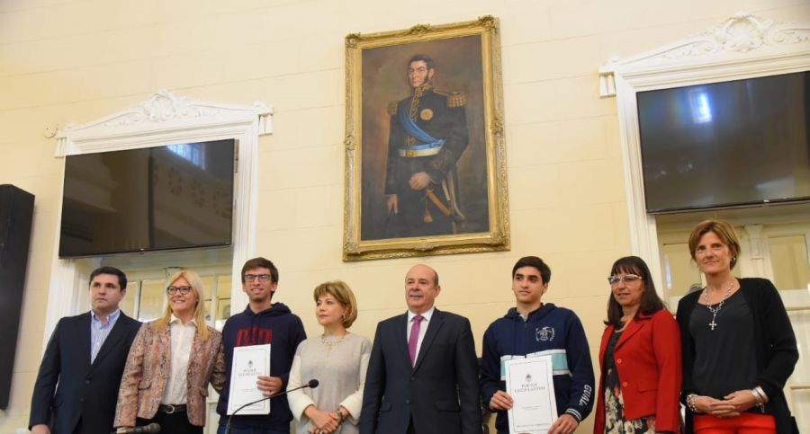 El vicegobernador Gustavo Canteros, junto a la senadora Nancy Sand, quien tuvo la iniciativa de realizar el reconocimiento, acompañados por las senadoras Nora Nazar, Carolina Martínez Llano, Rita Vanderland y el senador Victor Giraud, entregaron diplomas a los jóvenes.