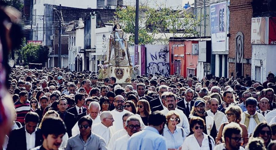 Al paso de la Virgen, los fieles levantaban pañuelos celestes y blancos. Junto a ella, la procesión trasladaba honores de la Capilla María Rosa Mística, de Virgen de Itatí, de la Parroquia San Roque Montpellier, de María Auxiliadora, de San Cayetano, de Jesús Misericordioso, del Inmaculado Corazón de María, de la Parroquia Niño Jesús y de la Comunidad Salesiana. también la acompañó el Estandarte de la Virgen de la Merced, los niños de catequesis y colegios católicos.