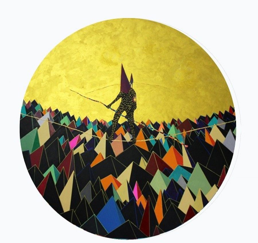 Foto: 1er Premio. Leonardo Cavalcante -"Astrea" :gouache sobre madera. 100 x 100 cm.