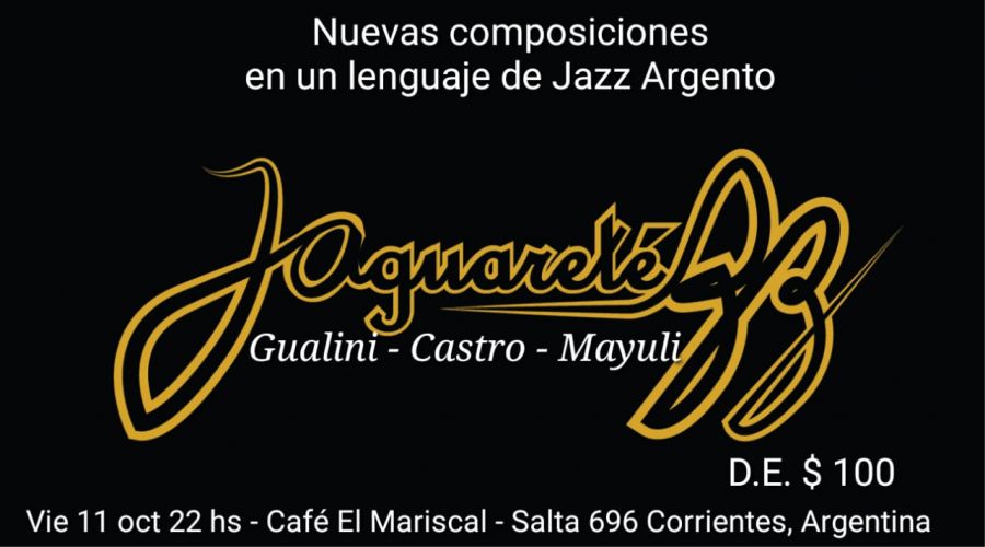 Este viernes 11 de octubre a las 22y30 se presentará el jazz trio JAguaretéZZ en “Café El Mariscal”, Salta 696 Corrientes.