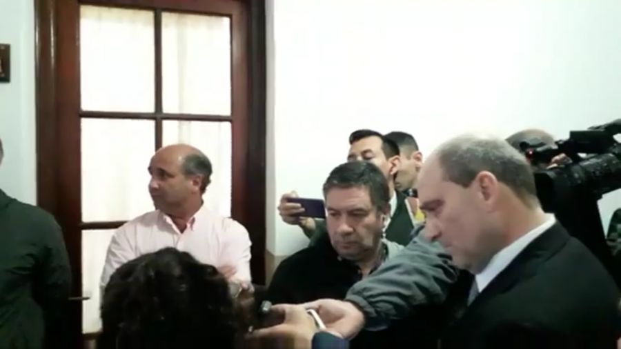 Foto: el momento en que el intendente Diego Caram es notificado de los allanamiento