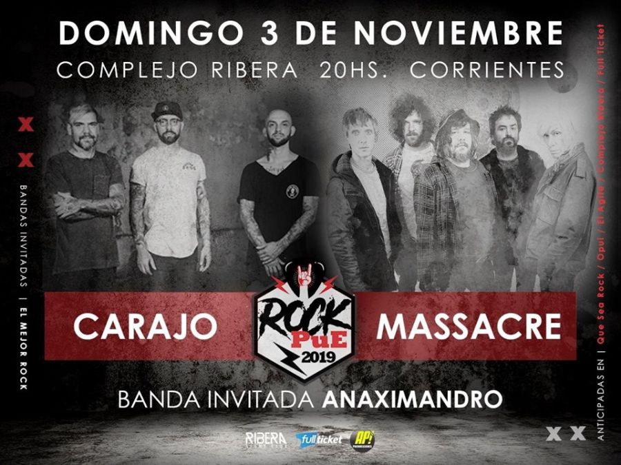 Tres bandas de rock con propuestas y estéticas particulares inauguran el festival Rock Pué. Massacre, Carajo y Anaximandro integran la grilla del recital que será el domingo 3 de noviembre. Ribera (Costanera Sur y Lamadrid) será el escenario para la primera edición del show en el que la trayectoria y solidez musical serán protagonistas.