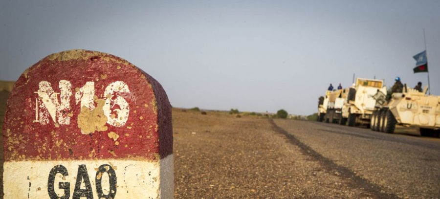 Foto: Un convoy de las fuerzas de mantenimiento de la paz de la ONU en Mali a su paso por la carretera hacia Gao, en el noreste de Mali.