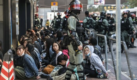 Foto: La policía interroga a los manifestantes que abandonaron el campus ocupado de la Universidad Politécnica de Hong Kong el lunes por la noche.