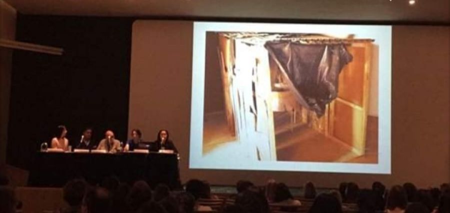 Aparte, en cuanto al nombre de la obra, por ejemplo, ella habla del original, del título y tema, del análisis técnico, de cómo debe ser la casilla con las medidas estrictamente estipuladas, cómo debe ser el moisés. O sea, qué es lo que ella pretende cuando el público entra; porque se trata de una obra que es interactiva. Ella trabaja con los sentidos: el observador ingresa y vive, siente el olor de la madera, de la basura y a su vez sufre un impacto al levantar el tul entre el mosquitero que se halla sobre el moisés y ver ese trozo de carne. Ese trozo de carne inicialmente había sido concebido como un trozo de carne real, pero cuando ella gana el premio, decide hacer una réplica en yeso pero con el mismo peso. Ese trozo pesa tres kilos, porque ella hace la referencia de que un niño cuando nace pesa alrededor de esos 3 kilos de carne. Incorpora todo un concepto social, desde la experiencia de vivir en un barrio carenciado, cuestión que expresa minuciosamente en este escrito. De tal manera, nosotros podemos volver a exhibir esta obra con toda la tranquilidad de que estamos cumpliendo con su concepto tal cual como ella ha concebido esa obra. Por ello deseo brindar por muchos desafíos más porque de eso se trata la vida justamente, la vida del restaurador; el desafío es parte de nuestra vida y también brindo por muchos espacios más donde podamos intercambiar experiencias que nos nutren a todos y es un bien para todos y es una riqueza para todos.