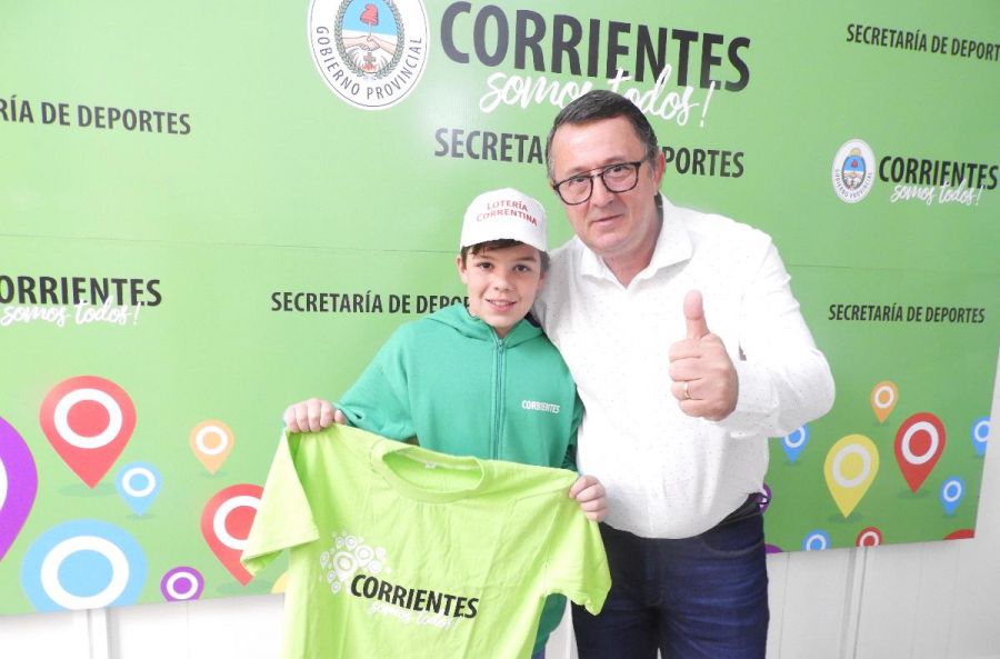 Al visitar la sede de la cartera deportiva junto a su padre que lo acompaña a todos lados, Benjamín agradeció el fuerte respaldo a su carrera que viene dando el Gobernador Gustavo Valdés, al titular de Deportes Jorge Terrile y a Lotería Correntina.