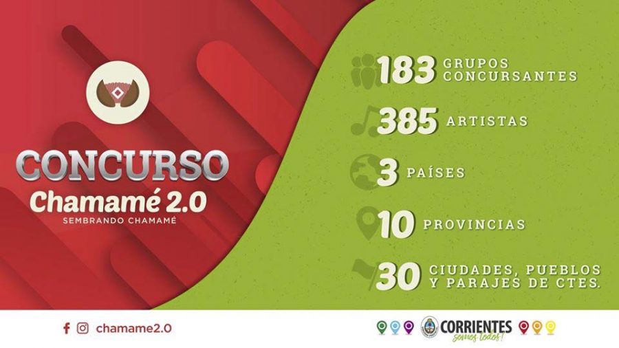 Durante el año, más de 180 solistas y conjuntos amateurs de 30 localidades enviaron videos interpretando canciones de Mario Bofill, Ernesto Montiel, Tarragó Ros, entre otros. Hasta el viernes 10 de enero estará abierta la votación en el Facebook “Chamamé 2.0 sembrando chamamé” para que la gente elija a sus participantes preferidos. Los dos más votados actuarán en la Fiesta, grabarán un disco y tendrán un videoclip.