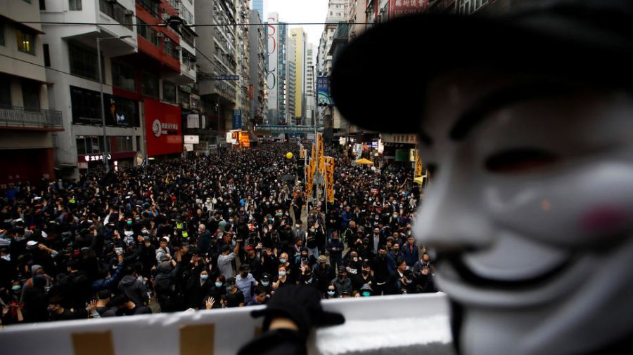 Foto : Un manifestante antigubernamental usa una máscara de Guy Fawkes durante una manifestación el día de Año Nuevo para pedir una mejor gobernanza y reformas democráticas en Hong Kong, China.