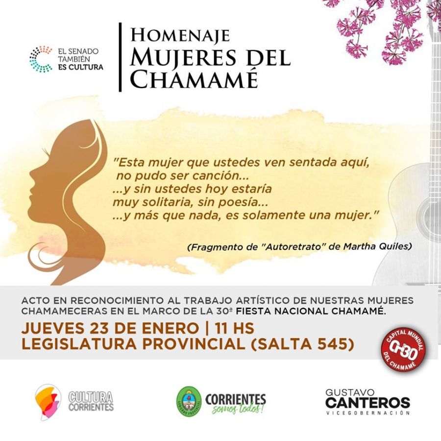 Será el jueves 23 de enero a las 11 en la Legislatura provincial. El vicegobernador Gustavo Canteros entregará la distinción General José de San Martín a mujeres cuyo aporte ha enriquecido al chamamé.