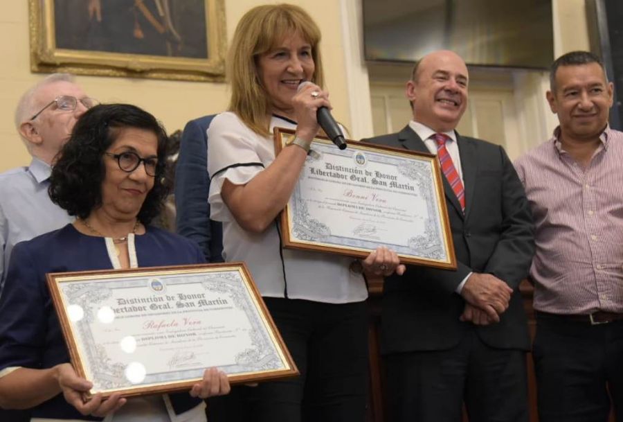 Gustavo Canteros entregó la distinción “General José de San Martín” a mujeres cuyo aporte ha enriquecido al chamamé, entre ellas a Ramona Galarza, Teresa Parodi, Nélida Argentina Zenón, María Ofelia, Boni y Rafaela Vera y Ofelia Leiva. En esta ocasión se sumaron dos distinciones post mortem a Marily Morales Segovia y Martha Quiles, que dejaron un importante legado de poesías y canciones.