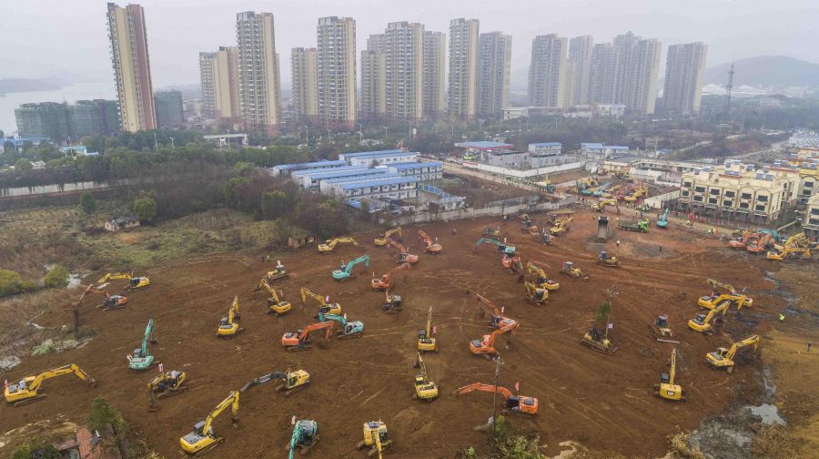 Según imágenes difundidas en la televisión, decenas de excavadoras y topadoras preparaban el terreno en que se erigirá el centro médico en Wuhan, la ciudad de 11 millones de habitantes donde se originó el brote de coronavirus.