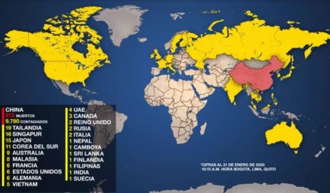Los casos en todo el mundo ascienden a 20.630 confirmados. La mayoría de los contagios se siguen produciendo en China, con 20471 confirmados y donde ya han muerto al menos 425 personas. Otro enfermo falleció en Filipinas y las autoridades de Hong Kong han reportado una víctima mortal. En el resto del mundo, 23 países han visto casos, aunque todavía no hay contagios confirmados ni en África ni en Latinoamérica.