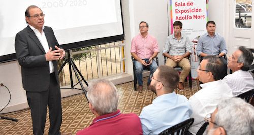 La charla fue para autoridades de la Región 1 Capital del Consejo de Crecimiento Económico y Desarrollo Social, entre ellos, Carlos Vassallo (APICC), Alejandro Revidatti (Cámara de la Construcción) y el secretario, Guillermo Basabe (FEC).