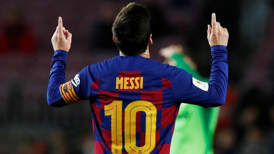 Foto: El futbolista argentino Lionel Messi celebra el quinto gol de FC Barcelona en el cotejo ante Levante por los dieciseisavos de final de la Copa del Rey, en el Camp Nou, el 30 de enero de 2020.