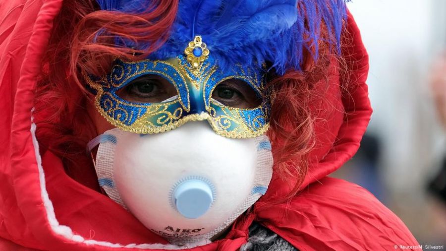 Foto: Una persona disfrazada para el carnaval italiano usa, además, una mascarilla para protegerse del coronavirus.