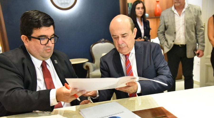 El vicegobernador de la provincia, Gustavo Canteros y el Decano de la Facultad de Derecho y Ciencias Sociales y Políticas de la Universidad Nacional del Nordeste Mario Villegas, firmaron un Convenio para el dictado de la Diplomatura en Políticas Públicas
