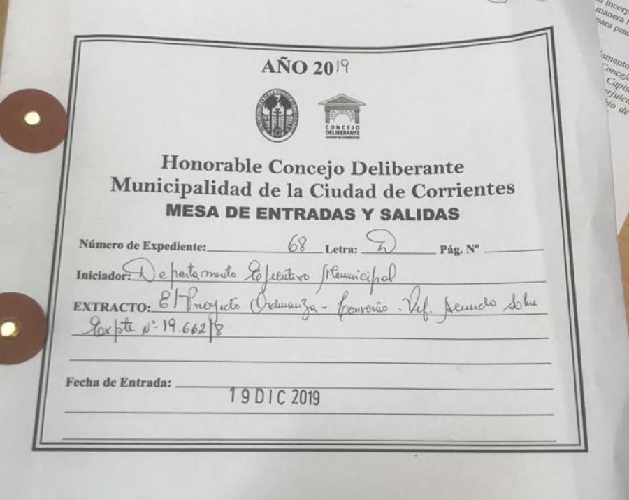 Se trata de una iniciativa de ley para "homologar" el "Convenio Transaccional" que firmó la Municipalidad y Hoco SA-Casinos del Litoral SA en 2019. El acuerdo fue firmado el 19 de enero de 2019 y adjuntado a la causa “Bayol Pablo Augusto y Bayol Leopoldo Gustavo C/ Municipalidad de la Ciudad de Corrientes S/ Expropiación” (Exp. 19.662) que se tramita desde 2008 en el Juzgado Civil y Comercial N°13 de la Capital.