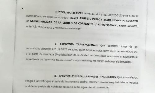 "Esto va a tener una continuidad judicial, y va a ir al expediente, y esto no implica absolutamente nada porque la demanda que se llevó adelante en sede judicial no la lleva a quien resulta hoy beneficiario por parte del intendente muncipal si no, el actor principal es el reclamante original", opinó.