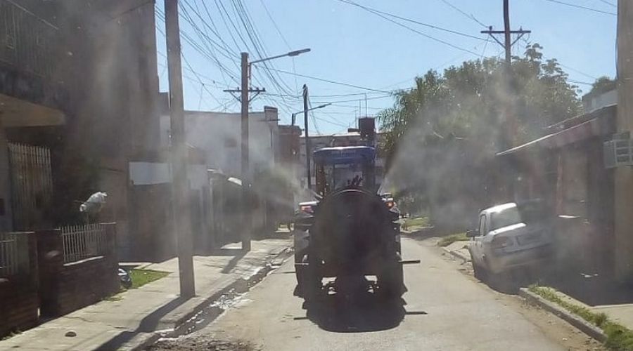 Durante dos jornadas brigadas del Ministerio de Producción realizaron una desinfección integral en el barrio San Marcos de la capital correntina, aislado preventivamente contagios de coronavirus.