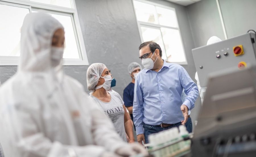 El gobernador Gustavo Valdés visitó este jueves el nuevo laboratorio que el Gobierno provincial montó en la zona de Santa Catalina para producir alcohol en gel, sanitizantes, repelentes y paracetamol.