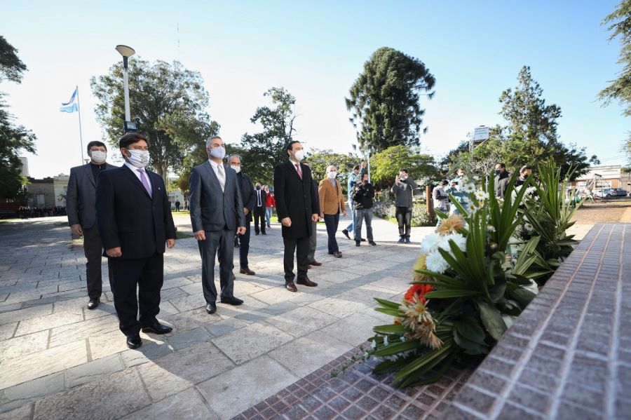 La ceremonia se concretó siguiendo las estrictas medidas sanitarias, en virtud de la pandemia por el Coronavirus, y en la oportunidad, el mandatario fue acompañado por ministros del gabinete provincial, al igual que por el intendente local, Walter Chávez