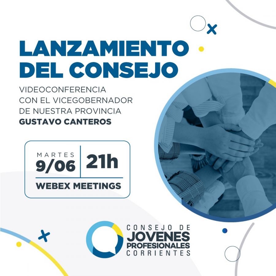 Hoy martes a las 21 hs a través de la plataforma webex meetings, se presentará el Consejo de Jóvenes Profesionales de Corrientes, en el marco de la vicegobernación de la provincia.