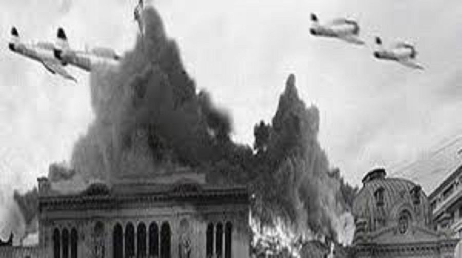 Con la complicidad de la jerarquía de la iglesia católica y de la partidocracia liberal de la época liderada por la UCR, la Marina –ideológicamente identificada con el liberalismo y la masonería pro-británica- y sectores del Ejército –ideológicamente identificado con el nacionalismo católico y con el liberalismo pro oligárquico- se convirtieron en los actores fundamentales de un acto criminal cuyo cobarde vandalismo no reconoce antecedentes en los anales de la historia patria: el bombardeo a “cielo abierto” a Plaza de Mayo del 16 de junio de 1955, con el trágico saldo de más de 300 muertos y miles de heridos, incluyendo en ese luctuoso saldo mujeres y niños en estado de total y absoluta indefensión.