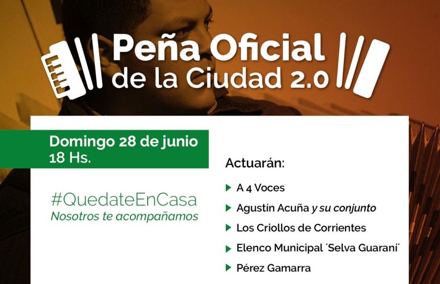 A partir de las 18 de este domingo, la Peña Oficial de la Ciudad ofrecerá nuevamente espectáculos musicales gratuitos para los vecinos que se conecten a través de las redes sociales de la Municipalidad de Corrientes. El objetivo es acercar melodías chamameceras para disfrutar de una jornada amena y recreativa sin moverse de sus hogares y, de esta manera, cumplir con el distanciamiento social obligatorio que rige por la pandemia de Covid-19.