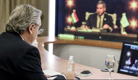 Fernández, en tanto, dijo que "el mundo se dio vuelta" con la llegada del coronavirus y que "estamos obligados a pensar un destino común en el Mercosur", ya que "no tiene sentido llorar sobre la leche derramada".