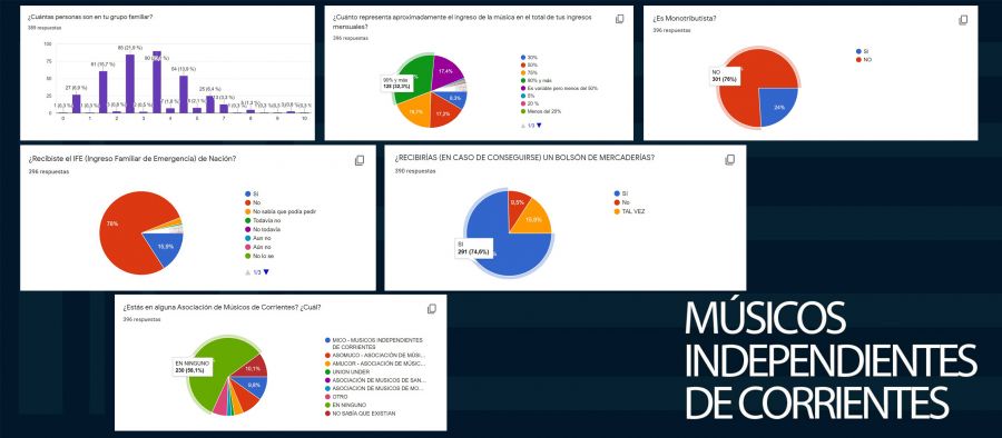 El relevamiento realizado por la Asociados de Músicos Independientes de Corrientes muestra que más del 73% de los artistas son el principal sostén de familia, compuesta entre 3 y 5 integrantes; para quienes entre el 50% y el 90% de los ingresos dependen de las actuaciones y actividades artísticas que están suspendidas hace casi 4 meses.