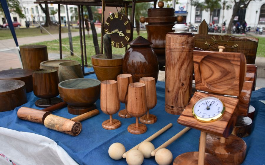 En el espacio público y con todas las medidas de prevención sanitaria, los expositores comercializaron una productos manufacturados en cuero, madera, tejido, entre otros, además de dulces regionales, comidas típicas y floricultura. Por la cercanía del Día del Amigo, los stands estarán también el sábado de 9 a 18.