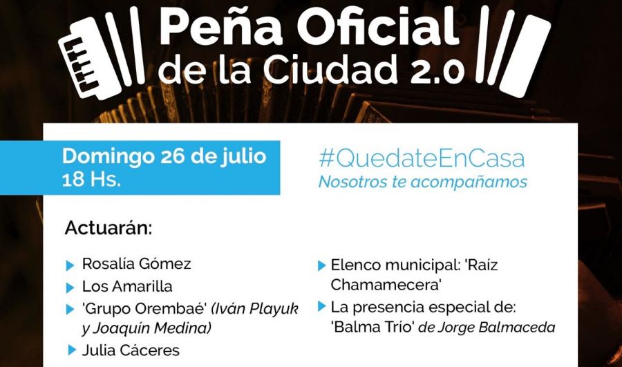 La Peña 2.0 incluirá a artistas como: Rosalía Gómez, Los Amarilla, Julia Cáceres y el grupo Orembaé, el elenco municipal: Raíz Chamamecera y la presencia especial de “Balma Trio” de Jorge Balmaceda. “Quien hace más de 40 años acompaña a Coquimarola y se suma a esta propuesta gratuita para todos los vecinos que lo disfruten”, dijo el director General de Expresiones Culturales Populares, Raúl Báez.