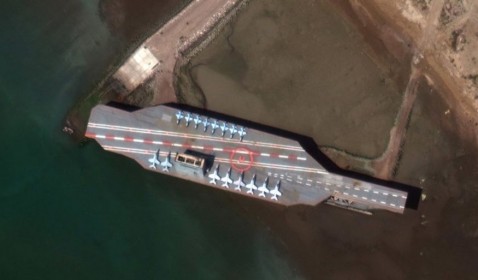 Concluyen con imágenes satelitales que el supuesto portaaviones Nimitz norteamericano en Bandar Abbas en Ormuz era una maqueta del gobierno iraní para un montaje bélico.