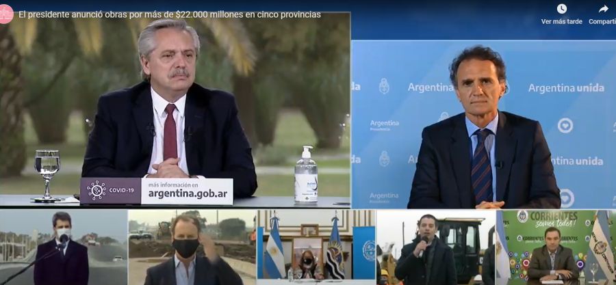 El presidente Fernández en video conferencia con el gobernador Gustavo Valdés anunció el inicio de la obra de Remodelación y Prolongación de Colectores Cloacales y Planta Depuradora Cloacal en la ciudad de Corrientes, con una inversión de 2.898 millones de pesos.